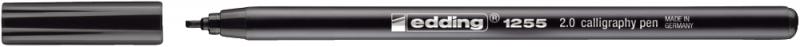 Artikelbeschreibung:Kalligrafie-Stift edding 1255 calligraphy pen. Fasermaler mit schwarzem Kunststoffschaft und Calligraphy-Spitze. Tinte auf Wasserbasis. Strichstärke: 2,0 mm. Schreibfarbe: schwarz.