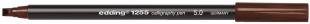 Artikelbeschreibung:Kalligrafie-Stift edding 1255 calligraphy pen · Fasermaler mit schwarzem Kunststoffschaft und Calligraphy-Spitze · Neue Spitze, weich schreibend und präzise geschliffen für kalligrafische Anforderungen. · Die Kalligrafie Spitze ermöglicht verschiedene Strichbreiten in einem Modell. · Sehr lichtbeständige Tinte. · Permanente Tinte ist wasserfest auf fast allen Oberflächen. · Tinte auf Wasserbasis · Strichstärke: 5,0 mm · Schreibfarbe: dunkelbraun · Made in Germany