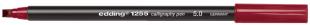Artikelbeschreibung:Kalligrafie-Stift edding 1255 calligraphy pen · Fasermaler mit schwarzem Kunststoffschaft und Calligraphy-Spitze · Neue Spitze, weich schreibend und präzise geschliffen für kalligrafische Anforderungen. · Die Kalligrafie Spitze ermöglicht verschiedene Strichbreiten in einem Modell. · Sehr lichtbeständige Tinte. · Permanente Tinte ist wasserfest auf fast allen Oberflächen. · Tinte auf Wasserbasis · Strichstärke: 5,0 mm · Schreibfarbe: karmesin · Made in Germany