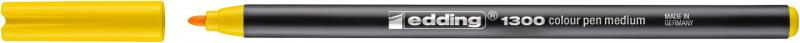 Artikelbeschreibung:Fasermaler edding 1300 color pen · Ideal für das Anfertigen von Zeichnungen, Schriften, Skizzen, Modezeichnungen und Effektvollen Layouts · Fasermaler mit schwarzem Kunststoffschaft und formstabiler Rundspitze · Auswaschbare Tinte auf Wasserbasis · Hohe Lichtbeständigkeit · Strichstärke: ca. 3 mm · Schreibfarbe: gelb