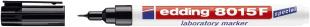 Artikelbeschreibung:edding 8015F laboratory marker. Spezialmarker für den professionellen Einsatz im Labor entwickelt. Besonders geeignet für das Beschriften und Markieren von glatten und transparenten Oberflächen wie z.B. Reaktionsgläser, Laborgeräte und Etiketten im Labor. Permanent auf Kunststoff. Beschriftung kann mit einem auf alkoholbasiertem Reinigungsmittel von Glas entfernt werden. Schnelltrocknend, wisch- und wasserfest, lichtbeständig, geruchsarm, extrem abriebfest. Extrem kältebeständig bis -183°C und sehr gute Hitzebeständigkeit bis 100°C - auf Aluminium sogar bis 500°C. Feine Rundspitze. Kunststoffschaft. Kappe mit Clip. Strichstärke: ca. 0,75 mm. Schreibfarbe: schwarz