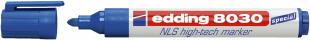 Artikelbeschreibung:Spezialmarker edding 8030 NLS high-tech marker. Permanentmarker zur korrosionsarmen Beschriftung im Bereich Nuklear, Luftfahrt und Schifffahrt, entspricht Luftfahrtnorm LN 9051. Permanente, geruchsarme, halogenarme Tinte, wisch- und wasserfest, lichtbeständig. Rundspitze. Kunststoffschaft. Umsteckbare Clip-Kappe in Schreibfarbe. Schaftfarbe: weiß. Strichstärke: 1,5 - 3 mm. Schreibfarbe: blau.
