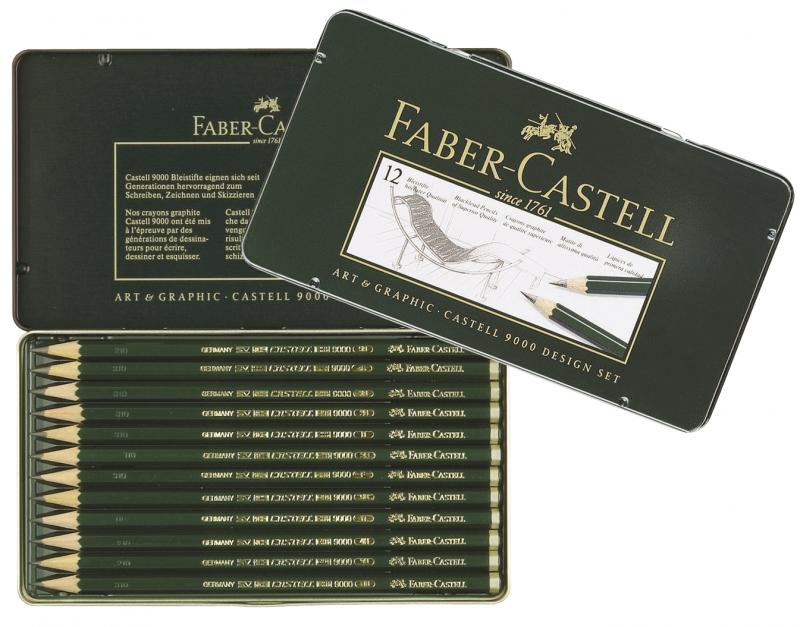 Artikelbeschreibung:Design Set Bleistift CASTELL 9000. Ausführung der Schaftform: Sechseckform. Gespitzt. Schaft lackiert. Lackierung auf Wasserbasis gegeben. Eine Auswahl verschiedener Härtegrade des Castell 9000 zum designorientierten Skizzieren. Härtegradkennzeichnung vorhanden. Länge: 175 mm. Farbe des Schaftes: dunkelgrün. Bezeichnung der Härte: 5B - 5H. Ausführung des Inhalts mit Packung: 12 Bleistifte im Blechetui.