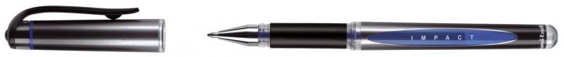 Gelschreiber - Schreibfarbe: blau, Schaftfarbe: grau/blau, Strichstärke: ca. 0,6 mm, Ausführung: Kappenmodell - Spezialmine, Gewicht: 18g inkl. Verpackung