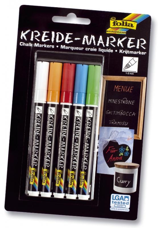 Kreidemarker - Schreibfarbe: 5 farbig sortiert, Strichstärke: 1-2 mm