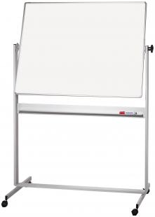 Stativdrehtafel. Oberflächenbeschaffenheit: lackiert. Beidseitig beschreibbar. Beschreibung der Besonderheiten: die horizontale Drehachse ist um 360° schwenkbar und stufenlos arretierbar. Material des Rahmens: Metall. Farbe des Rahmens: lichtgrau. Ablageschale vorhanden. Typbezeichnung der Stativform: Zweibeinstativ, 193 cm hoch. Ausführung des Fußes: Zweiarmfuß mit 4 Rollen, 67 cm tief. Lenkrollen feststellbar. Größe (B x H): 200 x 100 cm. Farbe: weiß.