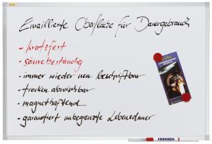 Artikelbeschreibung:Magnetische Schreibtafel X-tra!Line. Oberflächenbeschaffenheit: emailliert. Material des Rahmens: Aluminium mit Kunststoffecken. Farbe des Rahmens: silbereloxiert, Ecken hellgrau. Ablageschale vorhanden. Zubehör für Wandbefestigung: Spiegelaufhängung oder durch die Ecken, Schrauben und Dübel. Größe (B x H): 300 x 120 cm. Farbe: weiß.