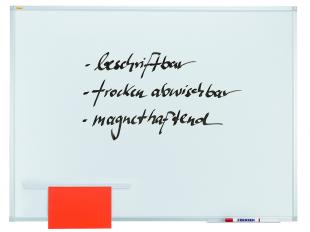 Artikelbeschreibung:Magnetische Schreibtafel X-tra!Line. Oberflächenbeschaffenheit: lackiert. Material des Rahmens: Aluminium mit Kunststoffecken. Farbe des Rahmens: silbereloxiert, Ecken hellgrau. Ablageschale vorhanden. Zubehör für Wandbefestigung: Spiegelaufhängung oder durch die Ecken, Schrauben und Dübel. Größe (B x H): 300 x 120 cm. Farbe: weiß.