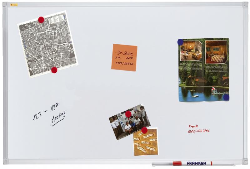 Artikelbeschreibung:Die lackierte, spezialbeschichtete Stahl-Oberfläche ist magnethaftend, beschriftbar und trocken abwischbar. Sie ist ideal als Magnetboard und für kurzfristige Notizen durch FRANKEN Tafelschreiber mit alkoholgelöster Tinte geeignet. Für dauerhafte Beschriftungen empfehlen wir unsere emaillierten Schreibtafeln. Silbereloxierter Aluminiumrahmen, inkl. Ablageschale und Zubehör für die Wandbefestigung. Die Montage ist einfach, problemlos und kann wahlweise im Hoch- oder Querformat erfolgen.Magnetische Schreibtafel X-tra!Line. Oberflächenbeschaffenheit: lackiert. Material des Rahmens: Aluminium mit Kunststoffecken. Farbe des Rahmens: silbereloxiert, Ecken hellgrau. Ablageschale vorhanden. Zubehör für Wandbefestigung: Spiegelaufhängung oder durch die Ecken, Schrauben und Dübel. Größe (B x H): 60 x 45 cm. Farbe: weiß.