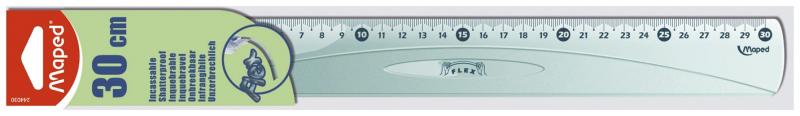 Artikelbeschreibung:Flachlineal Flex · Ausführung der Tuschekante: unterseitig · 100% bruchsicher, lässt sich biegen und drehen, Skalenaufdruck mit UV-beständiger Farbe für optimale Haltbarkeit, alle 5 cm eine gut sichtbare Markierung · Länge: 30 cm · Farbe: sortiert in blau und grün-transparent · Ausführung des Inhalts mit Packung: in Kunststoff-Etui