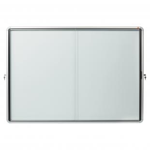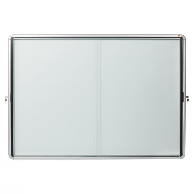 Artikelbeschreibung:nobo Schaukasten für den Innenbereich. Magnetisch. Mit platzsparenden, abschließbaren Schiebetüren. Für 18x DIN A4. Mit magnetischer Metallrückwand. Für die Verwendung von Magneten und trocken abwischbaren Markern. Mit 2 Sicherheitsschlössern. Nutzbare Tiefe: 16 mm. Einzigartige Haltewinkel ermöglichen eine einfache Montage. Lieferung inklusive Montageset und 2 Schlüsseln. Material Rahmen: Aluminium. Material Tür: Sicherheitsglas, 4 mm. Außenmaße (BxHxT): 141,2 x 100 x 5,4 cm. Farbe: weiß.