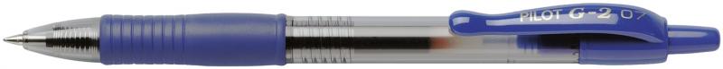 Artikelbeschreibung:Gelschreiber G2-7. Mit Druckmechanik und auswechselbarer Mine Art.Nr. 2606. Spitze aus Edelstahl mit Karbidkugel. Gefüllt mit Geltinte. Schaft und Clip aus Kunststoff. Gummierte Griffzone. Clip, Druckknopf und Griffzone in Schreibfarbe. Strichstärke: 0,4 mm. Schreibfarbe: Blau. Schaftfarbe: transparent.
