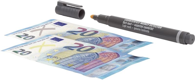 Artikelbeschreibung:Haben Sie schon mal einen Stift gesehen, mit dem Sie direkt kontrollieren können, ob ein Geldschein echt ist? Bei der Arbeit oder unterwegs? Der Safescan 30 ist der ideale tragbare Partner zur Falschgeldkontrolle. Der auffällig gefärbte Prüfstift ist das perfekte Mittel für eine schnelle und einfache Kontrolle aller Währungen. Wenn sich der Streifen auf dem Geldschein verfärbt hat, wissen Sie, dass Sie es mit einem falschen Geldschein zu tun haben. Wenn der Streifen verblasst und wieder verschwindet, ist der Geldschein echt. Direkte Echtheitsprüfung - Eignet sich für den Test aller Währungen.