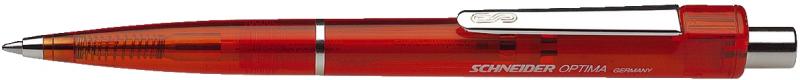 Artikelbeschreibung:Druckkugelschreiber Optima mit robusten Funktions- und Zierelementen aus Metall. Auswechselbare Großraummine Express 735 im "G2-Format" mit verschleißfester Edelstahlspitze, ISO 12757-2 G2, dokumentenecht. Universelle Minenpassform für Schneider-Minen Express 735, 740, 775, Gelmine Gelion 39 und Minen Slider 755, 757. Strichstärke: M. Schreibfarbe: rot. Schaftfarbe: rot-transparent.