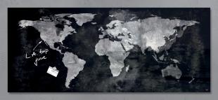 Magnettafel - Farbe: Design Weltkarte, Breite: 130 cm, Höhe: 55 cm, Tiefe: 1,5 cm, Zubehör: 4 Wandbefestigungen, 4 Dübel, 4 Schrauben