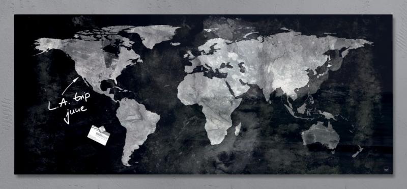 Artikelbeschreibung:Grauschwarzes, hochglänzendes Glas-Magnetboard Artverum im Design "World-Map". Das Board mit modern interpretierter Weltkarte in angesagter Steinstruktur ist designprämiert. Magnethaftend mit SuperDym-/Neodym-Magneten und mit SIGEL Markern optimal beschre