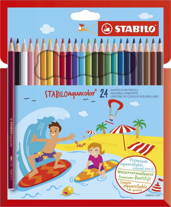 Artikelbeschreibung:Aquarell-Buntstift STABILOaquacolor Etui. Ausführung der Schaftform: sechskantig. Farbe des Schaftes: in Malfarbe. Material des Schaftes: Jelutong-Holz. Schaft lackiert. Größe (Ø x L): 6 x 175 mm. Wasservermalbar. Qualitativ hochwertiger, wasservermalbarer Buntstift. Für unglaubliche Farbeffekte. Macht Lust auf neue Mal-Techniken. Brillante Farben - intensive Farbabgabe. Stärke der Mine: 2,8 mm. Schreibfarbe der Mine: sortiert. Ausführung des Inhalts mit Packung: Kartonetui mit 24 Stiften.