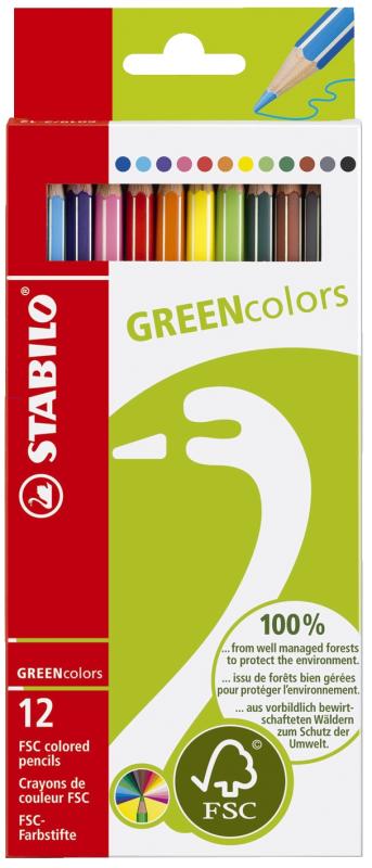 Artikelbeschreibung:Buntstift STABILO GREENcolors Etui · Ausführung der Schaftform: sechskantig · Farbe des Schaftes: in Schreibfarbe mit naturweißen Kantenstreifen · Material des Schaftes: Weymouths-Kiefer · Schaft lackiert, Rohstoff zur Herstellung aus verantwortungsvoller, nachhaltiger Forstwirtschaft · Größe (Ø x L): 8 x 175 mm · STABILO Minen-Qualität benötigt nur geringen Druck, wodurch das Abbrechen der Spitze verhindert wird. Stärke der Mine: 2,5 mm · Schreibfarbe der Mine: sortiert · Ausführung des Inhalts mit Packung: Kartonetui mit 12 Stiften