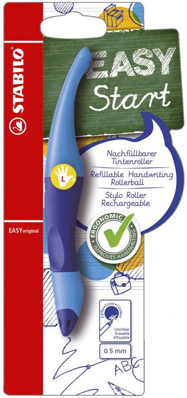 Artikelbeschreibung:Ergonomischer Tintenroller STABILO EASYoriginal. Kappenmodell. Typbezeichnung der Mine: extralange Patrone. Art der Schreibflüssigkeit: Tinte auf Wasserbasis. Ausführung Mine: Rollerballspitze aus Kunststoff mit Hartmetall, 0,5 mm, königsblau, Mine auswechselbar. Kann einige Tage offen liegen bleiben, ohne einzutrocknen. Tintenspeicher-Technik: Tamponsystem. Ausführung Stift: Kunststoffgehäuse, Griffzone aus rutschfestem Material. Für Linkshänder, ergonomisches Design. Farbe des Schaftes: dunkelblau/hellblau. Ausführung des Inhalts mit Packung: Packung mit 1 Stift inkl. 1 Patrone (medium, blau, löschbar) und Namensschild.