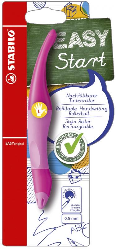 Artikelbeschreibung:Ergonomischer Tintenroller STABILO EASYoriginal. Kappenmodell. Typbezeichnung der Mine: extralange Patrone. Art der Schreibflüssigkeit: Tinte auf Wasserbasis. Ausführung Mine: Rollerballspitze aus Kunststoff mit Hartmetall, 0,5 mm, königsblau, Mine auswechselbar. Kann einige Tage offen liegen bleiben, ohne einzutrocknen. Tintenspeicher-Technik: Tamponsystem. Ausführung Stift: Kunststoffgehäuse, Griffzone aus rutschfestem Material. Für Linkshänder, ergonomisches Design. Farbe des Schaftes: pink hell/dunkel. Ausführung des Inhalts mit Packung: Packung mit 1 Stift inkl. 1 Patrone (medium, blau, löschbar) und Namensschild.