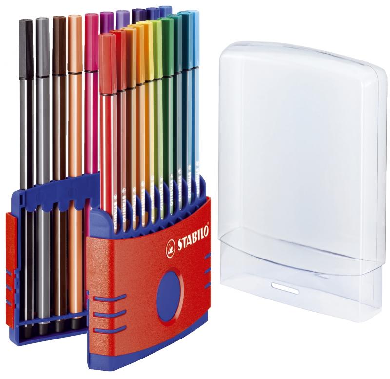 Faserschreiberetui - Schreibfarbe: 20 Farben sortiert, Strichstärke: ca. 1 mm, Ausführung: Rundspitze, Spitze druckgesichert: ja, Schreibflüssigkeit: geruchsneutrale Tinte auf Wasserbasis