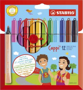 Artikelbeschreibung:STABILO Cappi. Filzstift mit Kappenring für alle, die in der Schule oder zu Hause mit Freunden gerne schöne Bilder mit coolen Stiften malen. Stiftkappen lassen sich an einem cleveren Ring auffädeln - und sind so praktisch nicht mehr zu verlieren. Dies verhindert, dass der Stift ohne Kappe austrocknet. Außergewöhnliche Tubenform - der Stift kann nicht wegrollen. Ergonomische Griffzone für optimale, kindgerechte Handhaltung. Strichstärke ca. 1 mm. Leicht auswaschbare Tinte. Bis zu 24 Stunden Austrocknungsschutz ohne Kappe. Nicht als Einzelstift erhältlich.