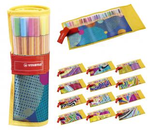 Artikelbeschreibung:Fineliner STABILO point 88 Individual. Just like you Edition Rollerset. Typbezeichnung der Mine: Faserspeicher. Ausführung Spitze: metallgefasste Spitze, 0,4 mm, geeignet für Schablone. Art der Schreibflüssigkeit: Tinte auf Wasserbasis, sortiert in 25 Farben, lichtbeständig gegeben. Kann einige Tage offen liegen bleiben, ohne einzutrocknen. Jedes Rollerset ist ein Unikat - dank einzigartiger Bedruckung. Kappe am Stiftende aufsteckbar. Ausführung der Griffzone: Kunststoff. Farbe der Kappe: in Schreibfarbe. Farbe des Schaftes: orange mit weißen Kantenstreifen. Ausführung des Inhalts mit Packung: Nylonetui mit transparentem Sichtfenster, Klettverschluss, Innentasche inkl. Reißverschluss. Befüllt mit 25 Stiften.