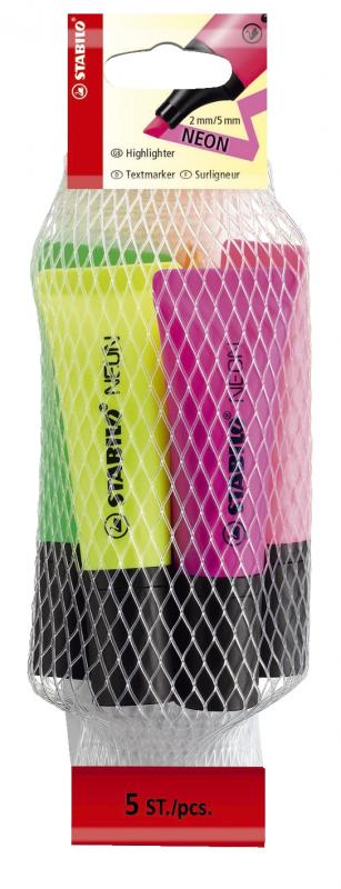 Artikelbeschreibung:Textmarker STABILO Neon. Schattenfrei kopierbar. Strichstärke: 2 + 5 mm. Art der Schreibflüssigkeit: Tinte auf Wasserbasis, lichtbeständig gegeben. Tintenspeicher-Technik: Kapillarspeicher. Stylisches minimalistisches Tubendesign im angesagten, sexy Neon-Look. Weiche Oberfläche für komfortable, angenehme Haltung. STABILO Anti-Dry-Out Technology: 4 Stunden Austrocknungsschutz für konzentriertes Arbeiten. Farbe des Schaftes: in Schreibfarbe. Farbe: sortiert: je 1 x gelb, grün, orange, pink, magenta. Ausführung des Inhalts mit Packung: Netz mit 5 Stiften.