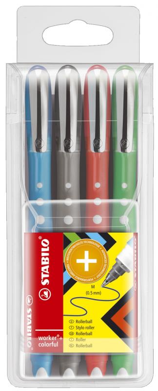 Artikelbeschreibung:Tintenroller STABILO worker colorful Etui. Kappenmodell. Typbezeichnung der Mine: Tintenrollermine. Art der Schreibflüssigkeit: Tinte auf Wasserbasis. Ausführung Mine: Neusilber-Spitze, 0,5 mm, grün, rot, blau, schwarz. Kann einige Tage offen liegen bleiben, ohne einzutrocknen. Tintenspeicher-Technik: Free Ink System. Ausführung Stift: Polypropylen, rutschfeste Oberfläche auf dem gesamten Schaft. Material des Clips: Metall. Fortschrittliche Liquid-Ink-Technologie. Für ein extrem sanftes Schreibgefühl. Akkurates Schriftbild auf jeder Papier-Qualität. Farbe des Schaftes: in Schreibfarbe. Ausführung des Inhalts mit Packung: Etui mit 4 Stiften.