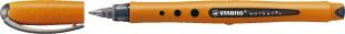 Artikelbeschreibung:Tintenroller STABILO worker fine. Kappenmodell. Typbezeichnung der Mine: Tintenrollermine. Art der Schreibflüssigkeit: Tinte auf Wasserbasis. Ausführung Mine: Edelstahlspitze für ein extrem sanftes Schreibgefühl und eine akkurates Schriftbild auf jeder Papier-Qualität, 0,3 mm, schwarz. Kann einige Tage offen liegen bleiben, ohne einzutrocknen. Tintenspeicher-Technik: Free Ink System. Ausführung Stift: rutschfeste Oberfläche aus Polypropylen, im ergonomischen Design. Material des Clips: Metallclip. Mit Tintenstandkontrolle. Farbe des Schaftes: orange.