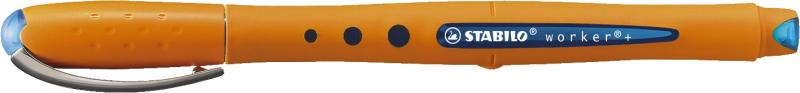Artikelbeschreibung:Tintenroller STABILO worker medium. Kappenmodell. Typbezeichnung der Mine: Tintenrollermine. Art der Schreibflüssigkeit: Tinte auf Wasserbasis. Ausführung Mine: Edelstahlspitze für ein extrem sanftes Schreibgefühl. Die unverwüstliche Spitze gleitet rasant über das Papier, 0,5 mm, blau. Kann einige Tage offen liegen bleiben, ohne einzutrocknen. Tintenspeicher-Technik: Free Ink System. Ausführung Stift: rutschfeste Oberfläche aus Polypropylen, im ergonomischen Design. Material des Clips: Metallclip. Mit Tintenstandkontrolle. Farbe des Schaftes: orange.