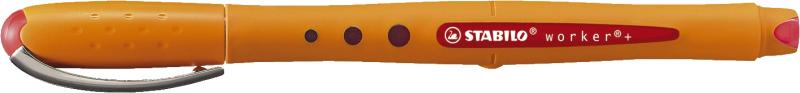 Artikelbeschreibung:Tintenroller STABILO worker medium. Kappenmodell. Typbezeichnung der Mine: Tintenrollermine. Art der Schreibflüssigkeit: Tinte auf Wasserbasis. Ausführung Mine: Edelstahlspitze für ein extrem sanftes Schreibgefühl. Die unverwüstliche Spitze gleitet rasant über das Papier, 0,5 mm, rot. Kann einige Tage offen liegen bleiben, ohne einzutrocknen. Tintenspeicher-Technik: Free Ink System. Ausführung Stift: rutschfeste Oberfläche aus Polypropylen, im ergonomischen Design. Material des Clips: Metallclip. Mit Tintenstandkontrolle. Farbe des Schaftes: orange.