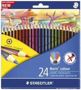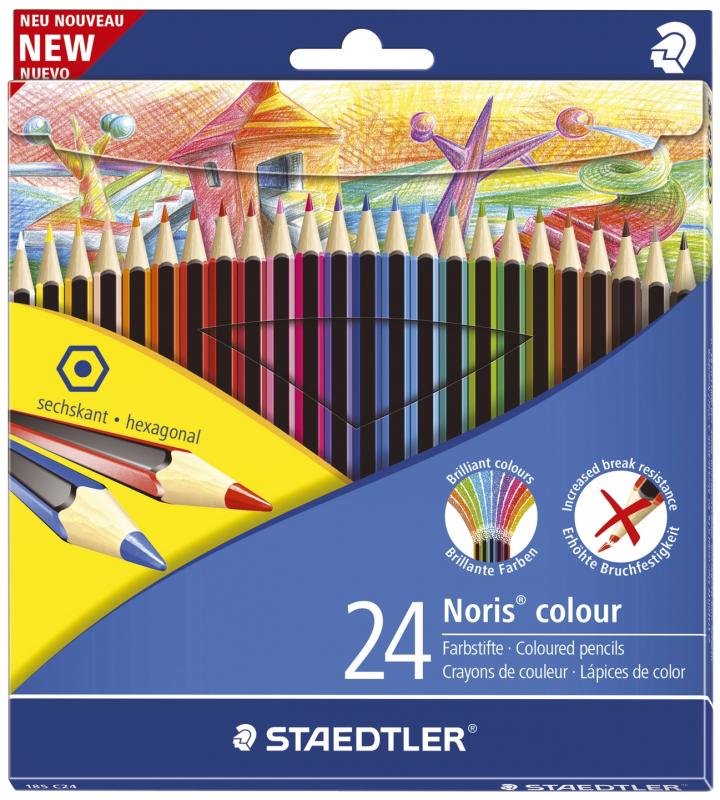 Artikelbeschreibung:Farbstift Noris colour. Ausführung der Schaftform: Hexagonal. Farbe des Schaftes: in Schreibfarbe. Material des Schaftes: Holz. Schaft lackiert. Lackierung auf Wasserbasis gegeben. Größe (Ø x L): 8 x 175 mm. Farbstifte aus Wopex Material garantieren hohe Bruchfestigkeit, ergonomische Soft-Oberfläche, Einmaliges Schreibgefühl, CO2-Neutralität, Holzanteil aus PEFC-zertifizierten deutschen Wäldern. Stärke der Mine: ca. 3 mm. Schreibfarbe der Mine: -30 lichtblau, -4 orange, -43, pfirsich, -5 grün, -50 gelbgrün, -61 rotlila,, -76 van Dyke Braun, -9 schwarz, -10 leuchtgelb, -2 rot, -20 magenta, -3 blau, -1 gelb, -0 weiß, -42 hellorange, -29 karmin, -6 violett, -33 kobaltblau, -35 türkis, -50 hellgrün, -57 olivgrün, -49 orangebraun, -73 sierra gebrannt, -80 hellgrau. Ausführung des Inhalts mit Packung: Kartonfaltschachtel mit 24 sortierten Farben.