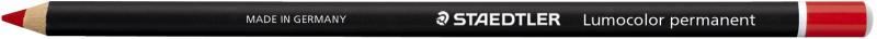 Artikelbeschreibung:Lumocolor permanent glasochrom Trockenmarker · Produktverwendung: für fast alle Flächen · Ausführung Stift: Holz, Schaft lackiert · wasserfest, farbintensiv und lichtecht, schlägt nicht durchs Papier, deckende Markierungen auch auf dunklen und transparenten Flächen, geruchlos · Länge: 175 mm · Farbe des Schaftes: schwarz, Tauchkappe in Minenfarbe · Strichstärke: richtet sich nach Abschriebwinkel · Schreibfarbe von Schreibgeräten: rot
