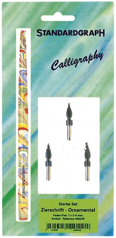 Kalligrafie - Ausführung: Halter + 3 Ornamentfedern, Strichstärke: 0,75-2-4 mm