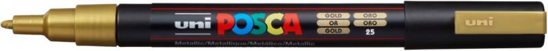 Artikelbeschreibung:Lackmarker UNI POSCA PC-3M. Bezeichnung der Schreibflüssigkeit: Pigmenttinte. Ausführung der Spitze: Rundspitze. Spitze austauschbar. Lichtbeständig, geruchlos, Tinte auf Wasserbasis, voll deckend. Durchdringt nicht das Papier. Ist auf Glas abwischbar. Material des Schaftes: Kunststoff. Ausführung der Griffzone: rund. Farbe des Schaftes: schwarz. Strichstärke: 0,9-1,3. Schreibfarbe von Schreibgeräten: gold. Die Farben können zusammenmischen werden, solange die Farbe noch feucht ist und sie aufeinander legen, wenn sie trocken sind. Mit einem Wassertropfen erhalten man einen Aquarelleffkt.